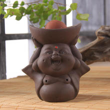 创意紫砂茶宠摆件多肉花盆小和尚精品陶瓷手工线香摆件茶具配件