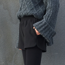 毛呢运动短裤女秋冬外穿韩国学生松紧腰显瘦百搭打底阔腿短裤靴裤