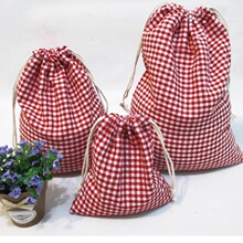 超大号化妆品杂物布袋收纳袋 格子棉麻 茶叶首饰香料包