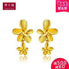 礼品 精选 周大福首饰花月佳期茉莉花足金黄金耳环计价F167630
