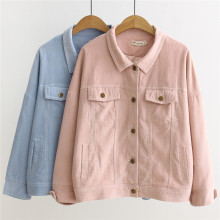 江南布旅 清新粉色灯芯绒外套 女蝙蝠袖小宽松上衣 2016秋装新款