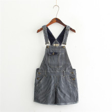 2016夏新日系清新小熊刺绣条纹牛仔背带短裤宽松显瘦热裤休闲裤女