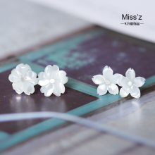 防过敏耳坠新款925纯银花朵珍珠耳环韩国耳钉女栀子小饰品耳饰