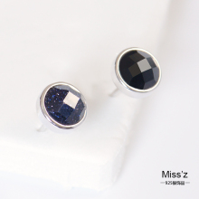 紫金沙耳钉女气质日韩国简约时尚黑玛瑙925纯银饰品男单只潮个性