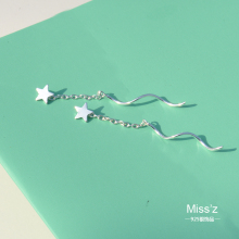 925纯银耳钉韩国气质简约女士吊坠星星波浪耳坠长款耳线个性耳环