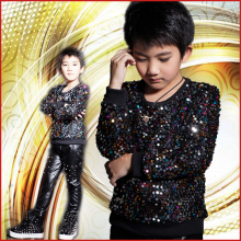 大童男装男孩演出服舞台服儿童长袖男童闪亮亮片T恤上衣演出服饰