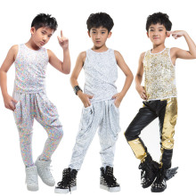 春晚街舞表演服装男儿童亮片舞台装儿童合唱服亮片马甲男童演出服