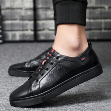 春季男鞋头层牛皮板鞋青年男真皮日常男士休闲鞋英伦潮流时尚皮鞋