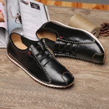 男鞋夏季男士休闲皮鞋真皮透气板鞋软面皮系带黑色青年潮鞋男英伦