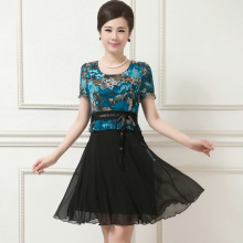 2017新款中老年女装连衣裙中年妈妈装大码修身短袖夏装雪纺连衣裙