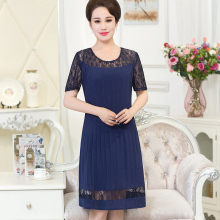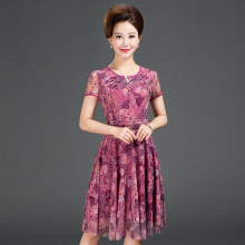 2017新款中年妈妈夏装蕾丝短袖连衣裙中老年女装大码中长款40岁50
