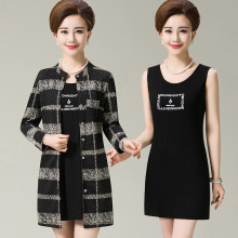 中老年女装夏装连衣裙长袖中年女士裙子中长款妈妈装两件套薄外套