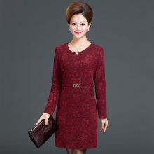 中老年女装2017春装长袖连衣裙中年妈妈装40-50岁中长款打底裙子