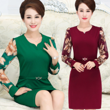 中老年女装春季韩版修身长袖打底衫 中年妈妈装春装中长款连衣裙