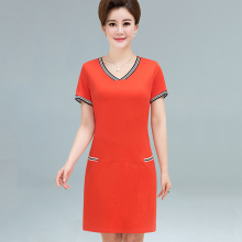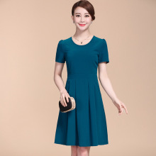 妈妈装中老年连衣裙35-40-50岁大码中年妇女装短袖纯色裙子夏装