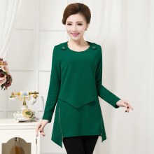 中老年女装春装长袖T恤中年妇女上衣40-50岁胖妈妈装中长款打底衫