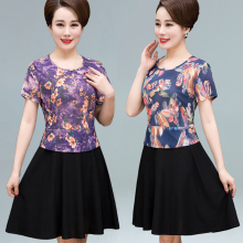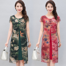 新款中老年女装夏装短袖雪纺连衣裙中年时尚妈妈装中长款印花裙子