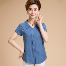 中老年女装夏装棉麻衬衫中年女加大码短袖T恤衫40-50岁妈妈装衬衣