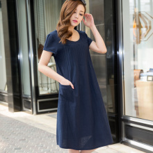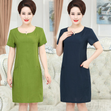 2017新款中老年女装连衣裙中长款大码夏装妈妈装宽松棉麻韩版裙子