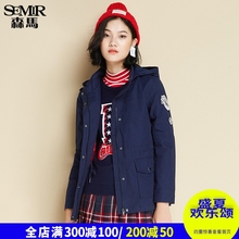 森马风衣 2016秋装新款 女士可脱卸帽NY字母绣章收腰夹克便服外套