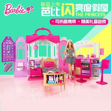 芭比闪亮度假屋带娃娃豪华甜甜屋大房子套装大礼盒女孩过家家玩具