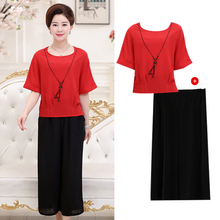 40-50岁中老年女装夏装阔腿裤套装妈妈短袖雪纺两件套2017新款潮
