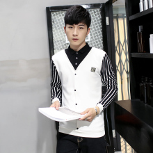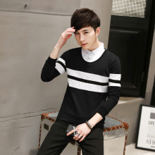 韩版男士衬衫领假两件长袖t恤青少年薄款春季休闲上衣学生打底衫