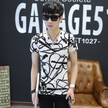 夏季v领短袖t恤青少年帅气花色修身体恤2017休闲半袖上衣服潮男装