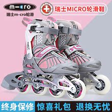瑞士m-cro溜冰鞋儿童全套装轮滑鞋可调直排轮旱冰鞋闪光轮男女ZT0