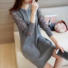秋冬款新款女装2016秋装蕾丝拼接秋款连衣裙长袖针织打底裙春秋潮