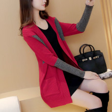 毛衣开衫针织衫中长款2016秋冬装新款女装韩版长袖修身拼色女外套