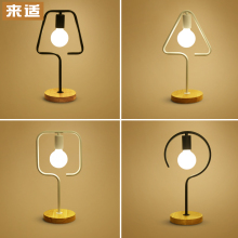 来适 北欧简约台灯创意美式木质书桌卧室LED床头灯实木装饰小台灯