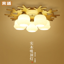 来适简约日式吸顶灯榻榻米现代客厅灯木质卧室灯LED实木鹿角灯具