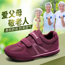 春夏中老年运动鞋男女跑步鞋网布透气软底超轻便防滑老人健步鞋子
