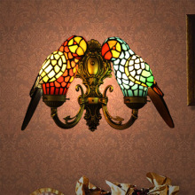 彩色玻璃地中海风格欧式孔雀羽毛蓝艺术玻璃复古床头灯蒂凡尼壁灯