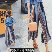 2017夏季新款高腰宽松民族风阔腿裤女韩版休闲九分时尚显瘦裙裤潮