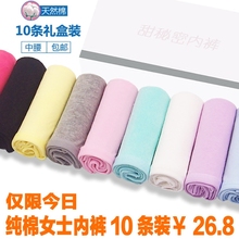 特价包邮女士内裤礼盒全纯棉纯色三角裤大码中腰女裤头内裤礼盒装