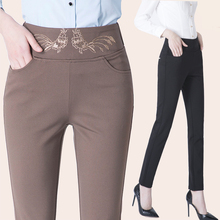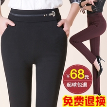 春秋款中老年女装高腰弹力女裤中年妈妈打底裤外穿小脚裤修身长裤