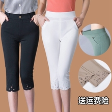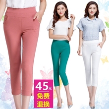 中年七分裤女夏季妈妈装打底裤外穿薄款中老年女裤高腰休闲小脚裤