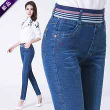 2017新款春秋装松紧腰牛仔裤女高腰弹力显瘦小脚裤长裤女妈妈裤子