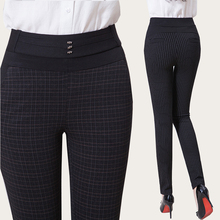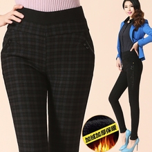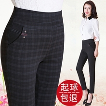 春秋季中年高腰打底裤女外穿小脚裤格子中老年女裤松紧腰裤子大码