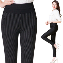 春秋中老年女式休闲裤妈妈高腰弹力竖条纹直筒裤小直筒女裤子薄款
