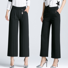 2017春夏新款高腰条纹阔腿裤女妈妈九分裤大码中年女裤直筒休闲裤