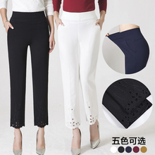 春夏薄款高腰妈妈打底裤外穿大码弹力中年九分裤女中老年小脚裤子