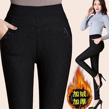中老年女裤春秋外穿打底裤中年妈妈加绒高腰小脚裤松紧腰加厚棉裤