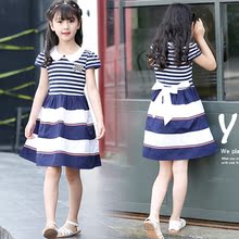 儿童装8女童连衣裙夏装9条纹长裙子10中大童装12-14岁学生公主裙