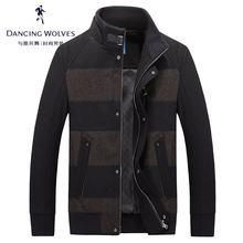 与狼共舞毛呢大衣 时尚男装 冬装 男士中青年立领外套 拼色条纹
