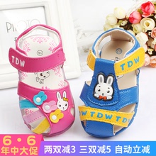 0-1-3岁婴幼儿皮凉鞋男童女童宝宝夏季包头凉鞋儿童学步鞋闪灯鞋