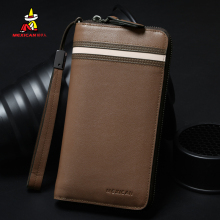 Mexican/稻草人男士钱包长款牛皮手拿包男拉链钱夹大容量手包男包
