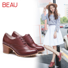 BEAU春秋布洛克女鞋真皮厚底系带牛津鞋女复古英伦低跟单鞋休闲鞋